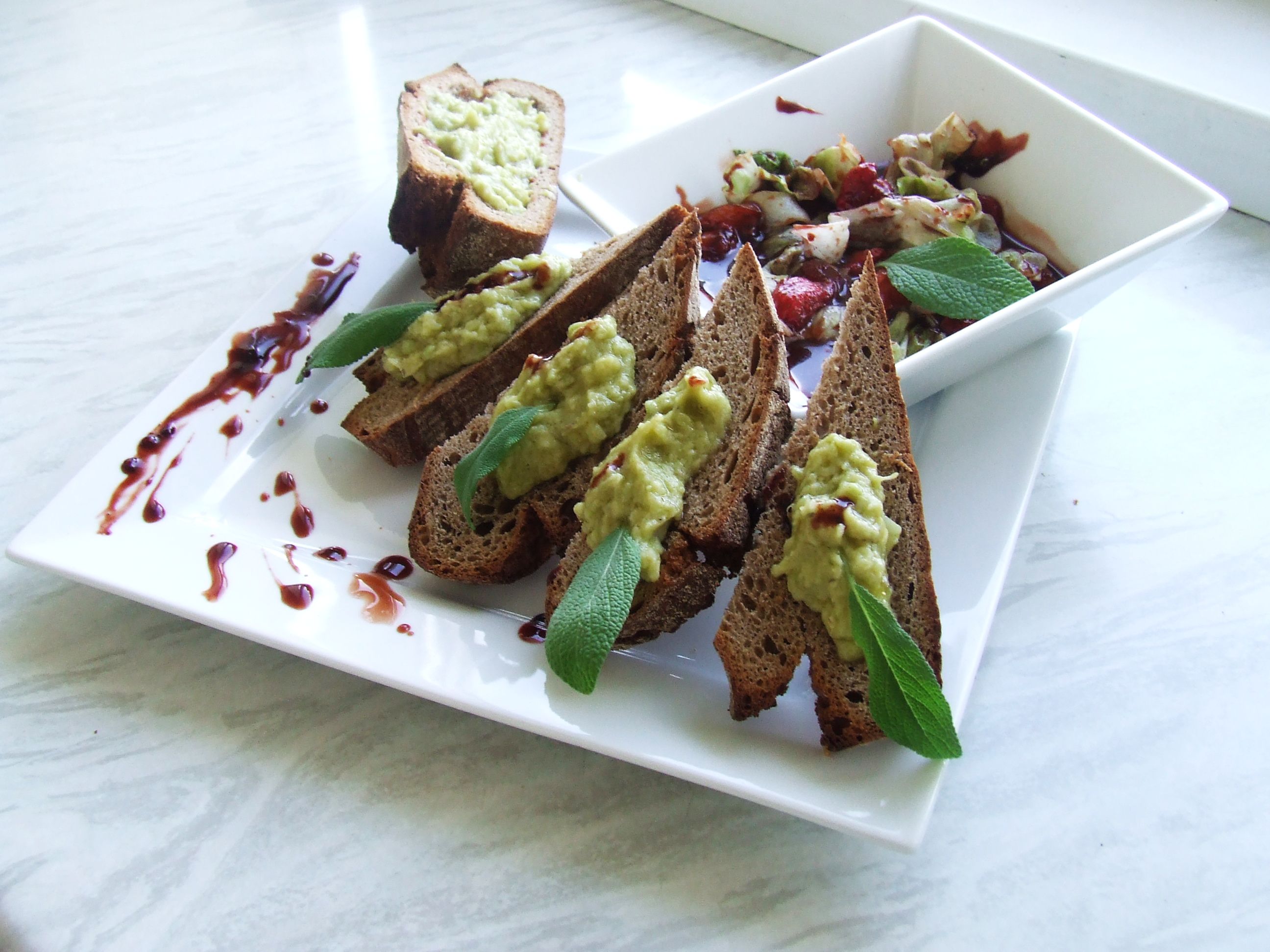 – guacamole na wiejskich grzankach: dojrzałe avocado, duży ząbek czosnku, oliwa, sok z limonki/cytryny, sól i pieprz, do tego grzanki z wiejskiego,pełnoziarnistego ciemnego chleba (stąd taka fantazyjna nazwa potrawy 😛 )