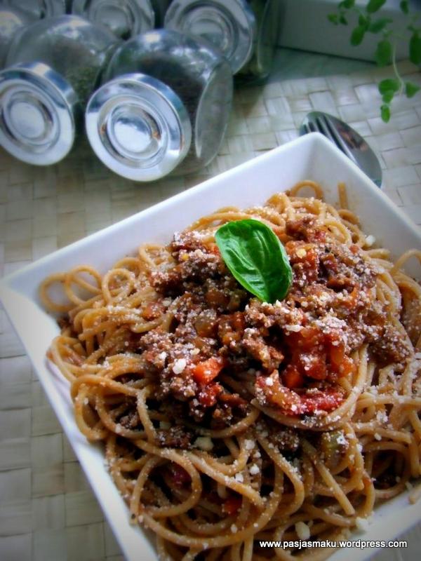 Otóż tak… Spaghetti bolognese po prostu kocham 🙂 Najbardziej wtedy, kiedy wyjem makaron a mięsny sos z kawałkami sera został na talerzu i spokojnie mogę się nim delektować:) Apeluję !!! Wiem, że sosów w słoiku jest pełno i wybór jest przeróżny, ale w żadnym z nich nie znajdziecie tego co możecie znaleźć w tym przepisie – smaku. Zapraszam do gotowania 🙂