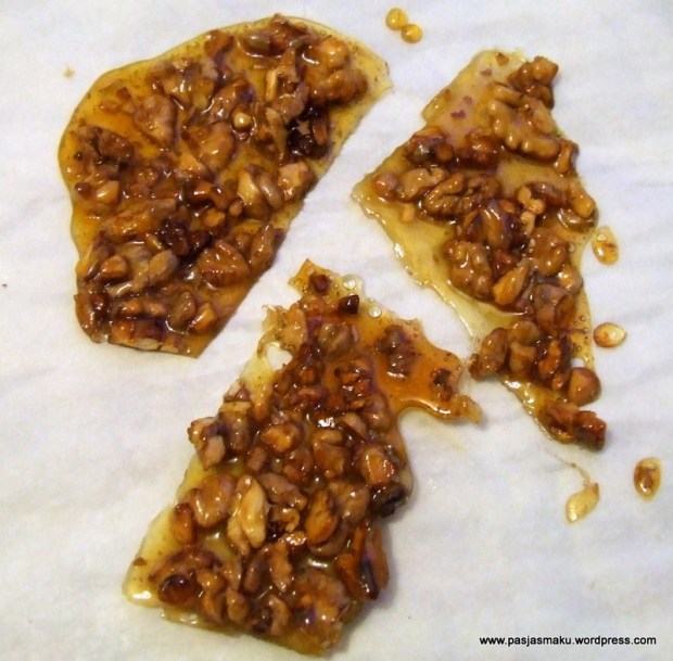 Szybki i prosty do wykonania przysmak, kiedy mamy ochotę na coś słodkiego i chrupiącego. Karmel w połączeniu z włoskimi orzechami.
