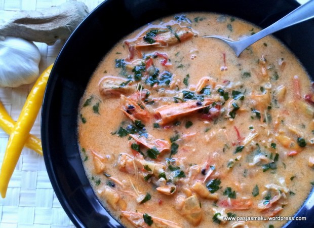 - Dodajemy 100 ml mleczka kokosowego, 2 łyżki sosu rybnego (jeśli nie mamy takiego, po prostu doprawiamy solą – zupa będzie po prostu mniej aromatyczna) i posiekaną natkę pietruszki. Gotujemy kilka minut i gotowe – możemy serwować i jeść.