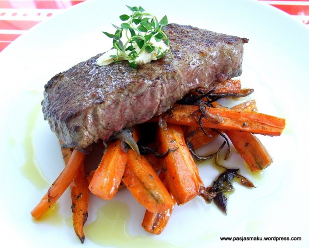 Mam nadzieję, że mimo, iż nie był to żaden pomysł na gotowe danie to okaże się dla Was pomocny w dalszym gotowaniu. A na dodatki przyjdzie czas, kiedy już opanujecie technikę smażenia mięsa. Ja swój dzisiejszy stek (na zdjęciu) podałem z pieczoną marchewką, na którą przepis jest w poście niżej.