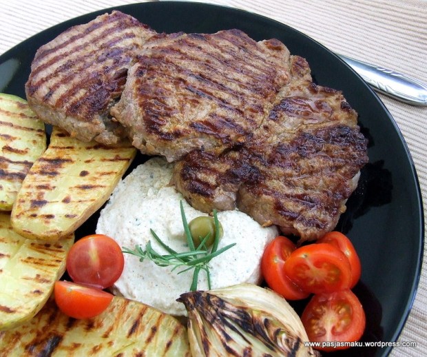 • Smażymy na dobrze rozgrzanej patelni grillowej (jak już wcześniej pisałem użyłem żeliwnej) po ok. 4 minuty z obu stron. Odstawiamy na 2 -3 minuty, żeby mięso odpoczęło i podajemy.