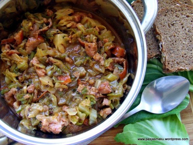 Czekałem na taką przyjemność cały rok. Młoda kapusta duszona z aromatycznym kminkiem, smaczkiem z kiełbasy, czosnku i mielonej papryki. Nie ma tutaj w sumie nic więcej do opisywania – najlepiej zrobić i spróbować 🙂