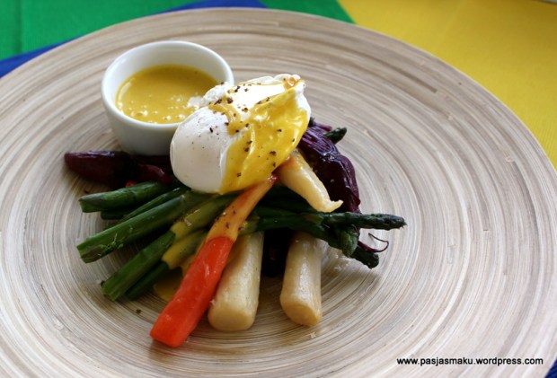 - Dla dopełnienia całości dania dodałem idealnie wręcz pasujący do tych smaków sos holenderski (przepis na blogu).