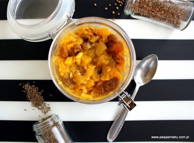 - Chutney jest gotowy do jedzenia. Można go podawać bezpośrednio na ciepło lub na zimno. Ja osobiście uwielbiam go po 2-3 dniach „odpoczynku” w lodówce, kiedy wszystkie smaki przejdą sobą nawzajem.