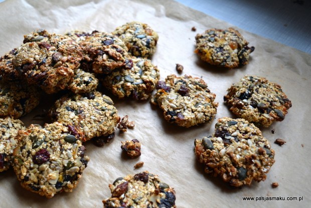 - Z otrzymanej masy musli formujemy ciasteczka i rozkładamy na blachę wyłożoną papierem do pieczenia.