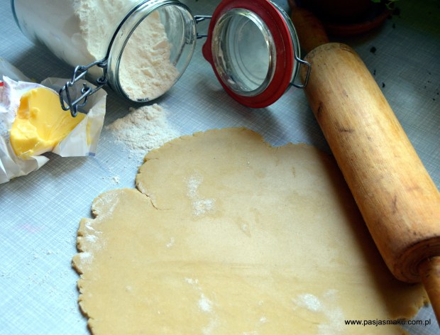 Knead pastry by hands for a few minutes, use food wrap and let them rest in the fridge for 30 minutes at least. - Ciasto wałkujemy na około 5 mm grubości i pieczemy 15-20 minut w piekarniku rozgrzanym do 175 stopni.
