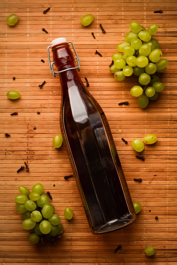 Fill up grapes with sugar, add cloves and star anise. Let it rest for 3 to 5 days to ooze juices.